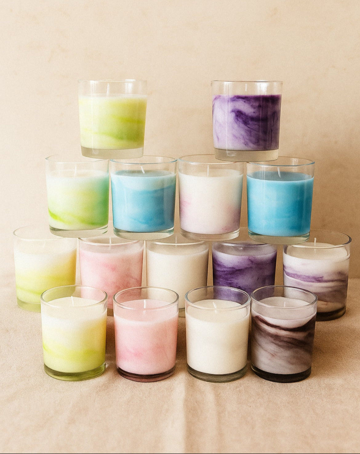 Todos nuestros productos son hechos a mano con materiales delicados, especialmente cera natural de soja, lo que hace que cada pieza sea única.